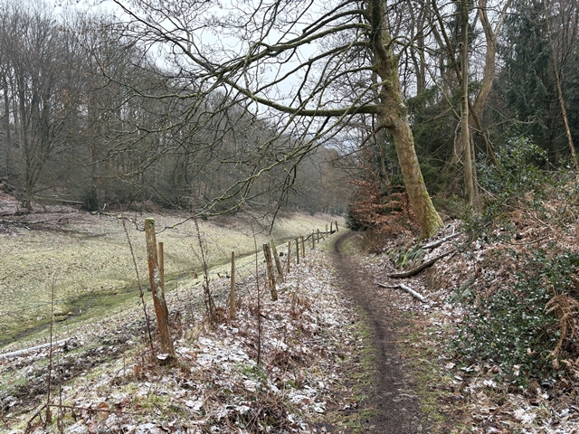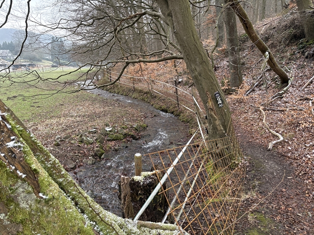 Im Tal der Wolfsbecke wird es noch einmal besonders idyllisch. Hier ist es spürbar stiller, abgeschirmt von den Höhenzügen. Der kleine Bachlauf, die leicht geschwungenen Wege und die winterliche Ruhe machen diesen Abschnitt zu einem der schönsten der gesamten Runde.