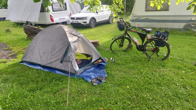Ich fuhr weiter bis nach Wahlwies. Am Ortsausgang entdeckte ich ein Schild: Campingplatz. Perfekt. Hier war für heute Schluss.