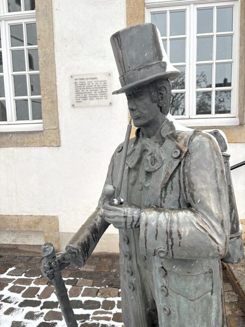 Der Tag begann in Dickeberg bei winterlichen Bedingungen. Der Schnee machte die Landschaft still und fast zeitlos. Gerade auf historischen Wegen wie dem Töddenweg entsteht dadurch eine besondere Atmosphäre: Man ist langsamer unterwegs, aufmerksamer, und nimmt den Weg intensiver wahr.