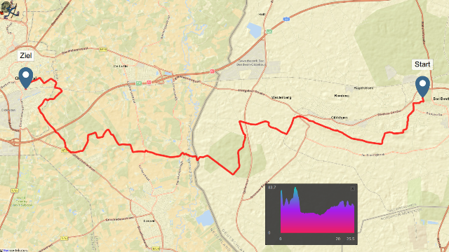 Der Startpunkt dieser letzten Etappe liegt erneut in der historischen Altstadt von Bad Bentheim. Beim Losgehen führen die ersten Meter noch einmal durch kleine Gassen, vorbei an alten Häusern, die zum Teil noch aus der Zeit der wandernden Leinenhändler stammen.