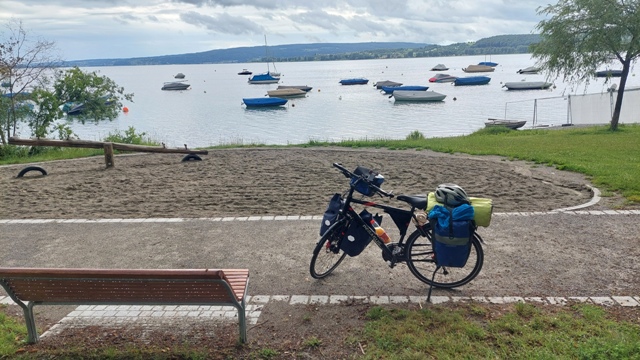 Heute geht die Radtour weiter. Das Zelt ist abgebaut, alles wieder sorgfältig auf dem Rad verpackt. Die Weiterfahrt führt in Richtung Radolfzell am Bodensee, weiterhin auf dem EuroVelo 6.
