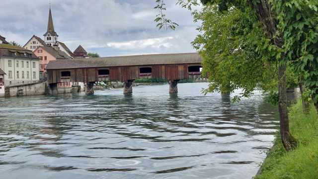 Weiter ging es im Regen, wieder hinaus aus der Schweiz, bis zur alten Holzbrücke von Gailingen am Hochrhein, die zurück in die Schweiz führt. Kurz darauf war ich wieder auf Schweizer Seite unterwegs, in Richtung Schaffhausen.