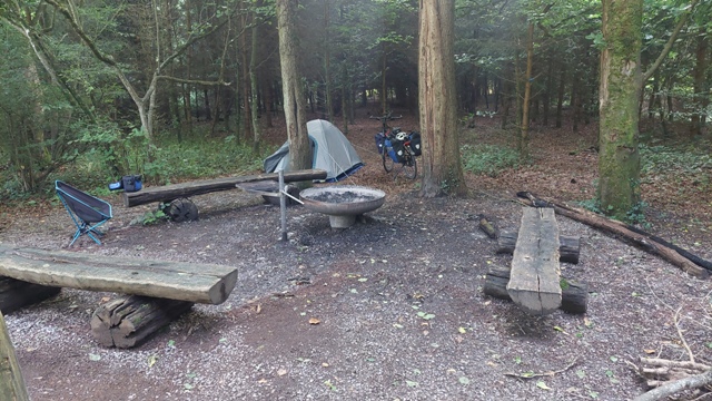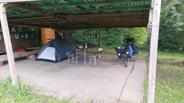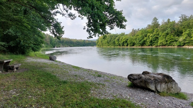 Hinter Laufenburg fand ich die Antwort. Direkt am Radweg lag ein Rastplatz mit Feuerstelle – perfekt für diese Nacht. Zelt aufbauen, etwas essen und den Tag Revue passieren lassen, bevor es schlafen ging.