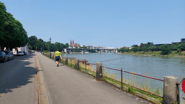 Der Morgen begann frisch, aber das Packen ging wie gewohnt schnell. Tag 4 der Reise konnte starten. Die Route führte nun langsam in Richtung Basel, zunächst noch durch bewaldete Abschnitte. Bei dem herrlichen Morgen legte ich immer wieder kurze Stopps ein, um auf den Rhein zu schauen.