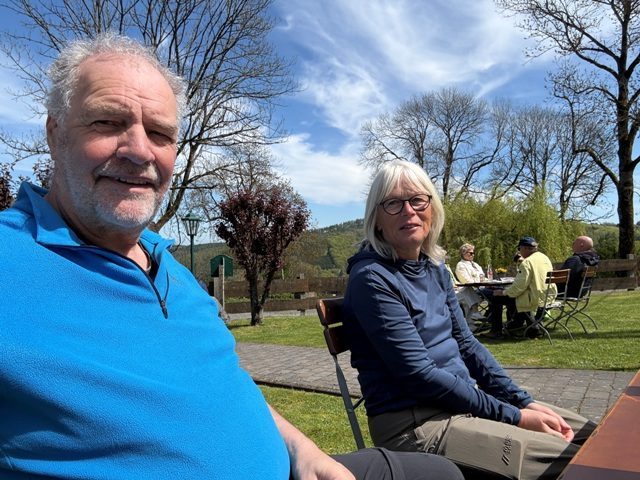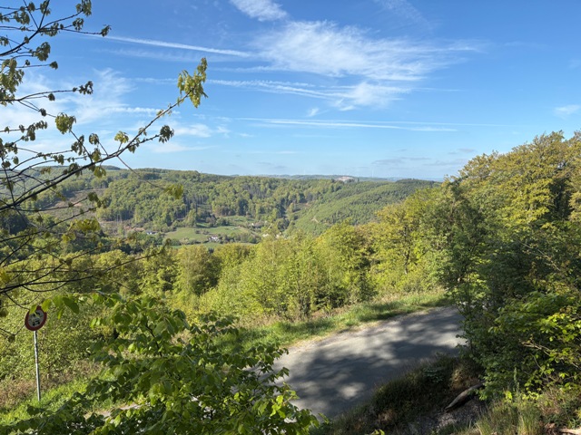 Weiter ging es auf den Drahthandelsweg. An einer Bank mit einer fantastischen Weitsicht legten wir unsere erste kurze Rast ein. Einfach mal tief durchatmen und den Blick schweifen lassen – das ist Freiheit pur! Vorbei am Aussichtspunkt bei Kesbern näherten wir uns dann dem kulinarischen Ziel des Tages.
